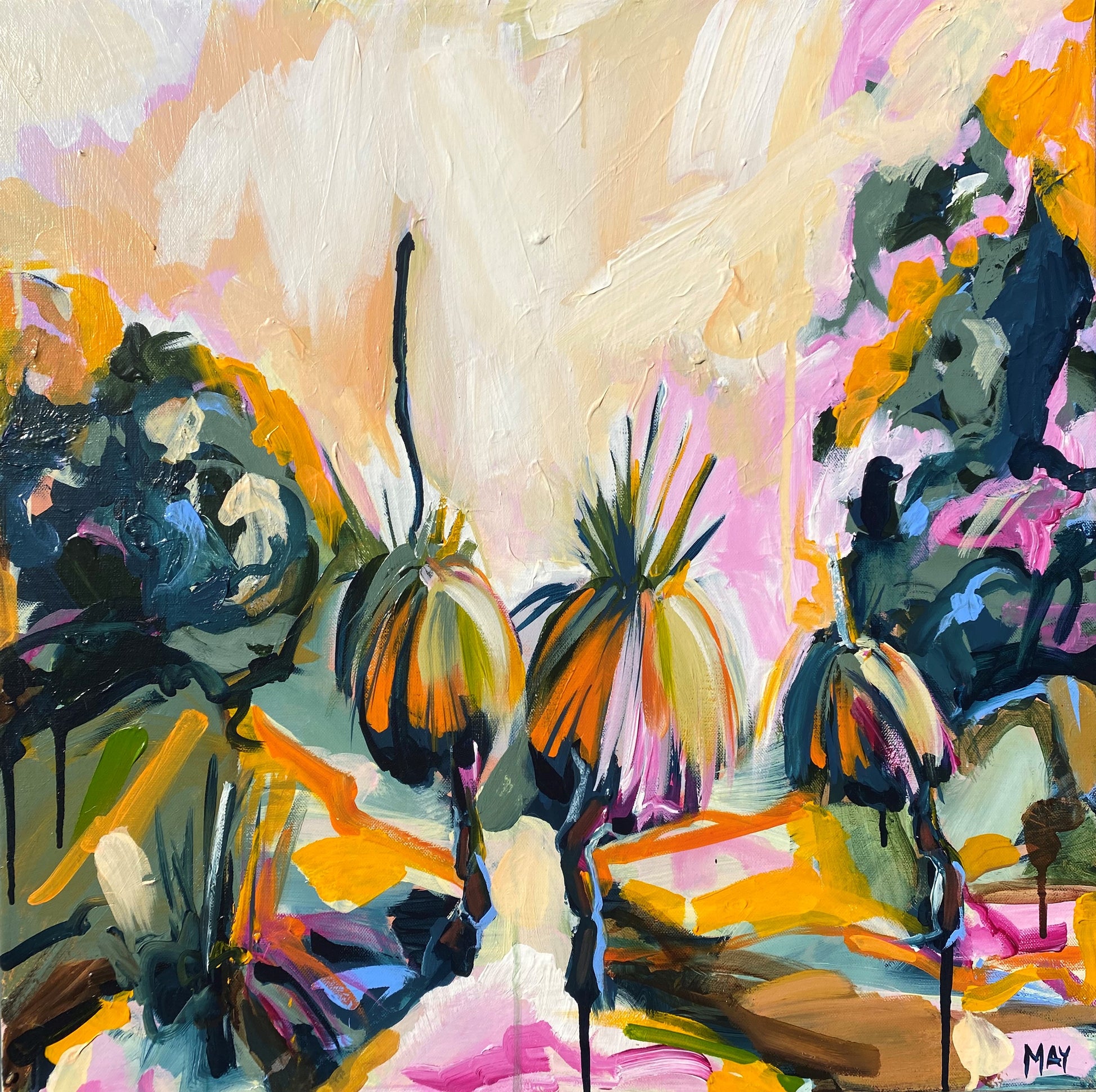 Throughout this work I have tried to capture the vibrancy of the Australian bush. The intermingling of colour and life; from the darkest, shadowy blues to the brilliance of a hazy summer sky. A moment where the ground and sky are ablaze with colour and the foliage appears as golden as the setting sun.
