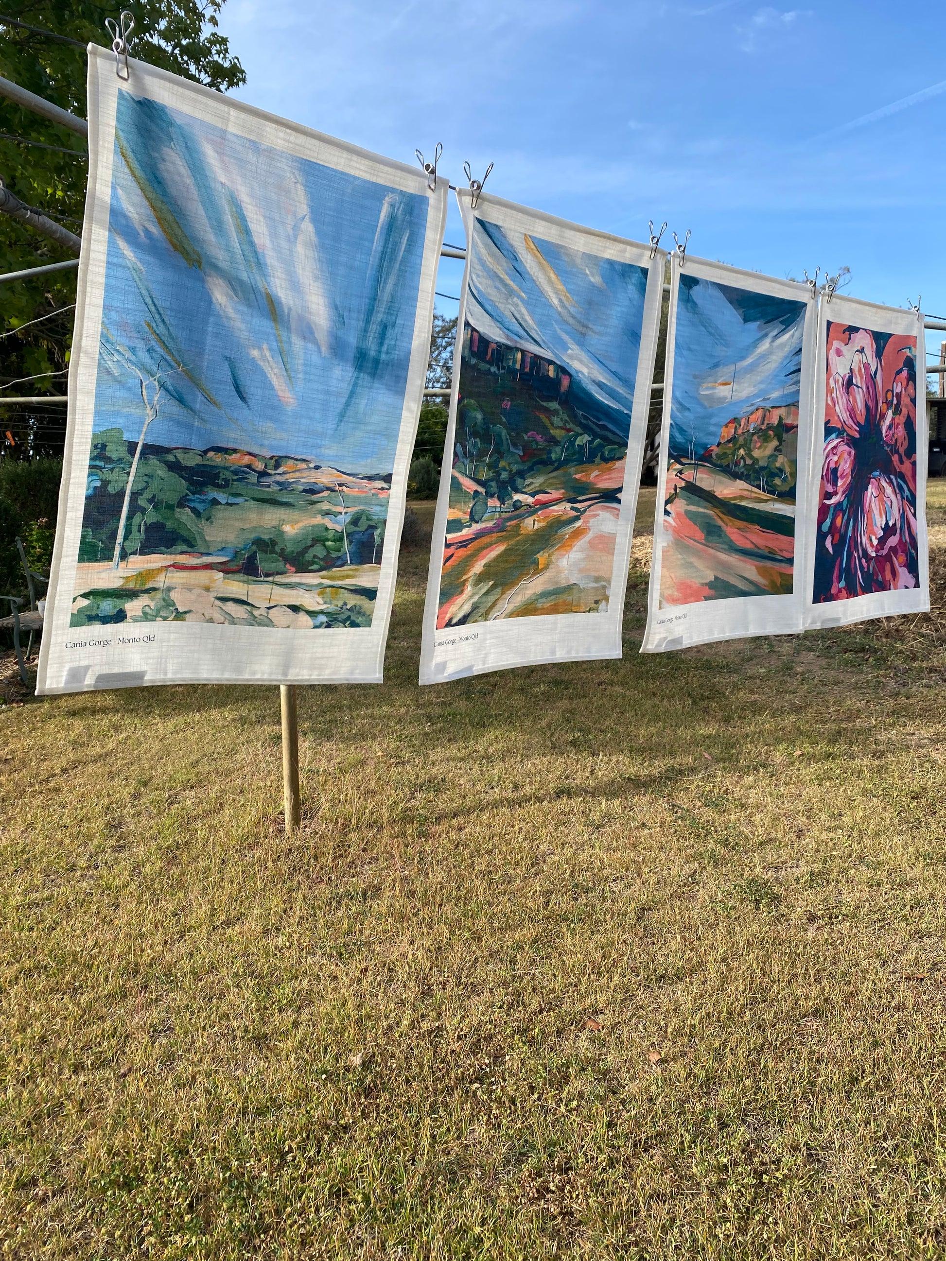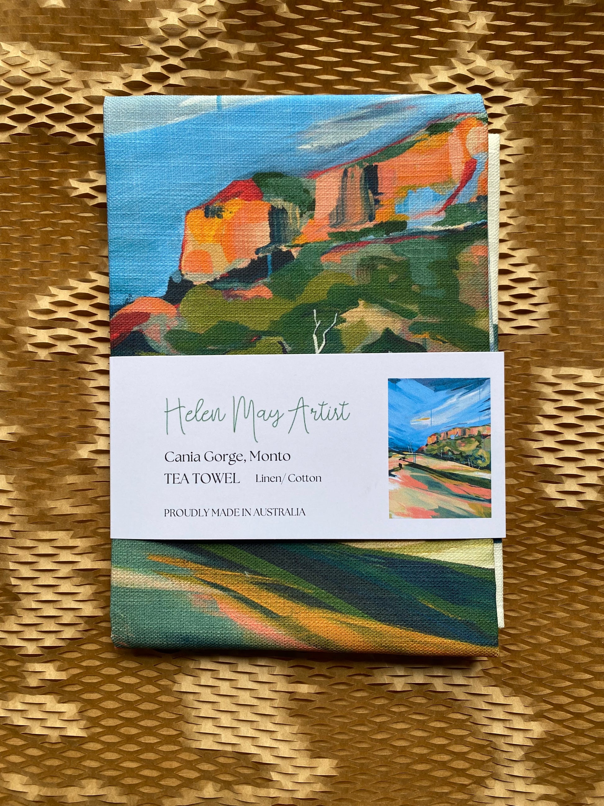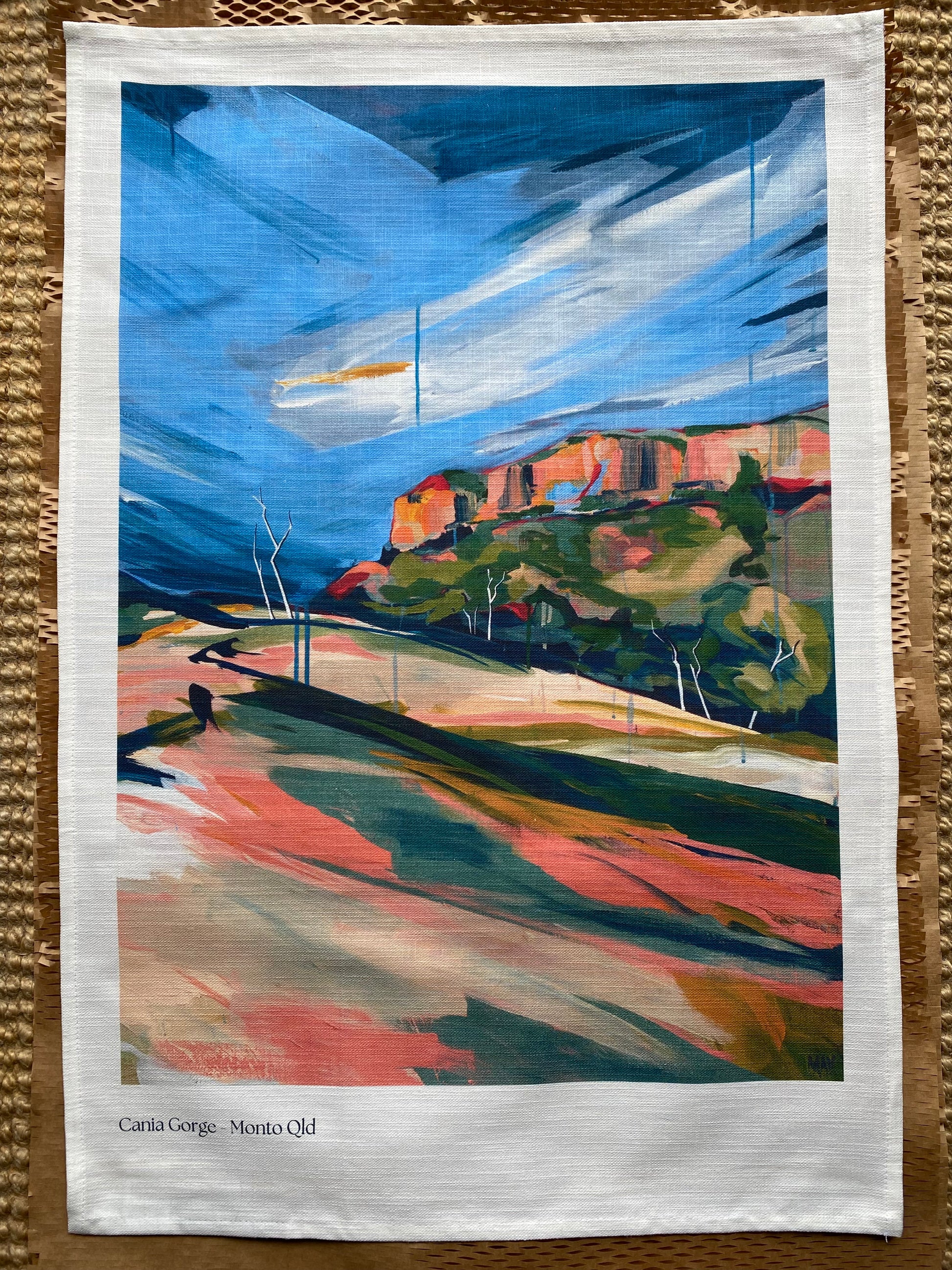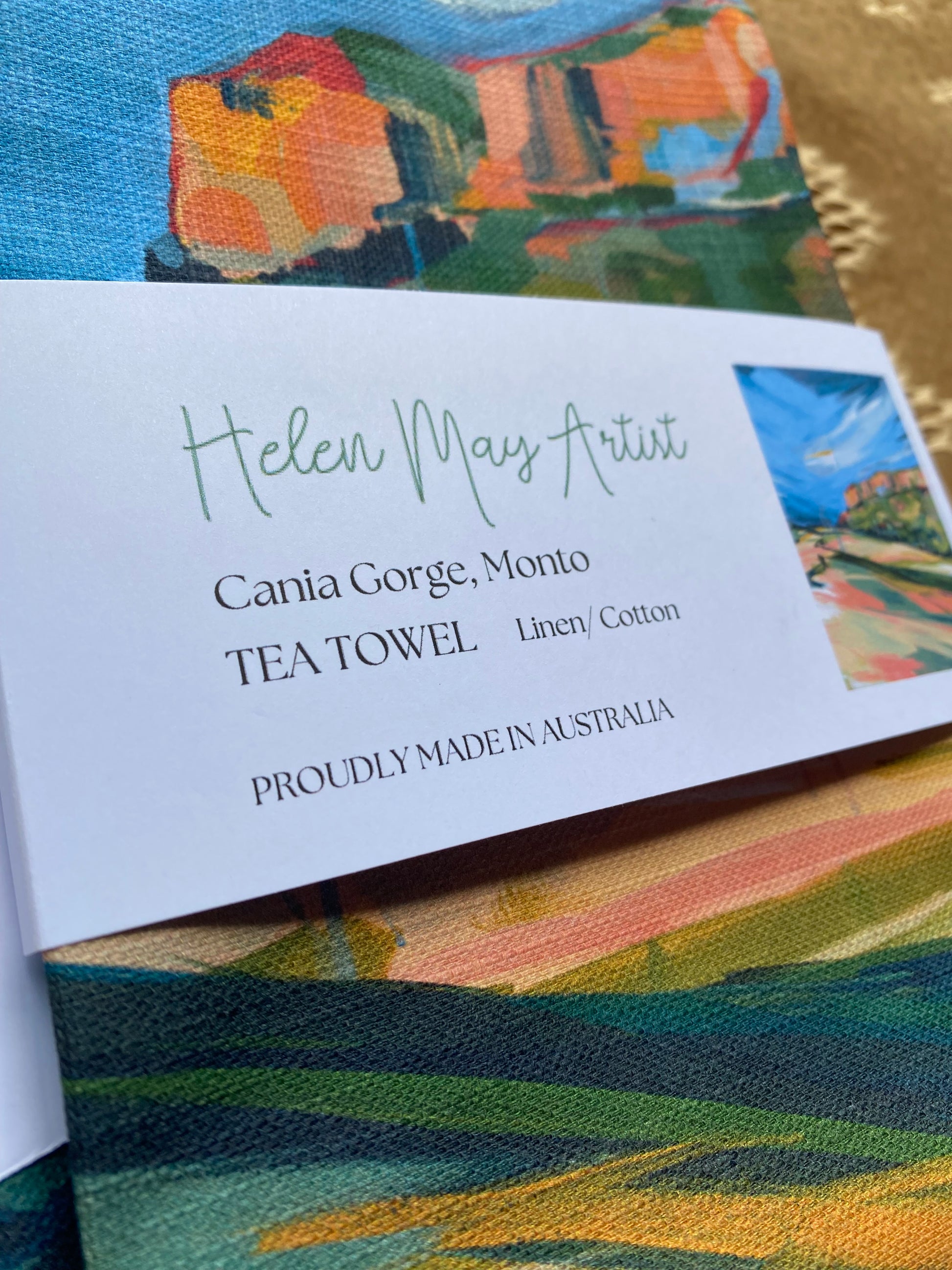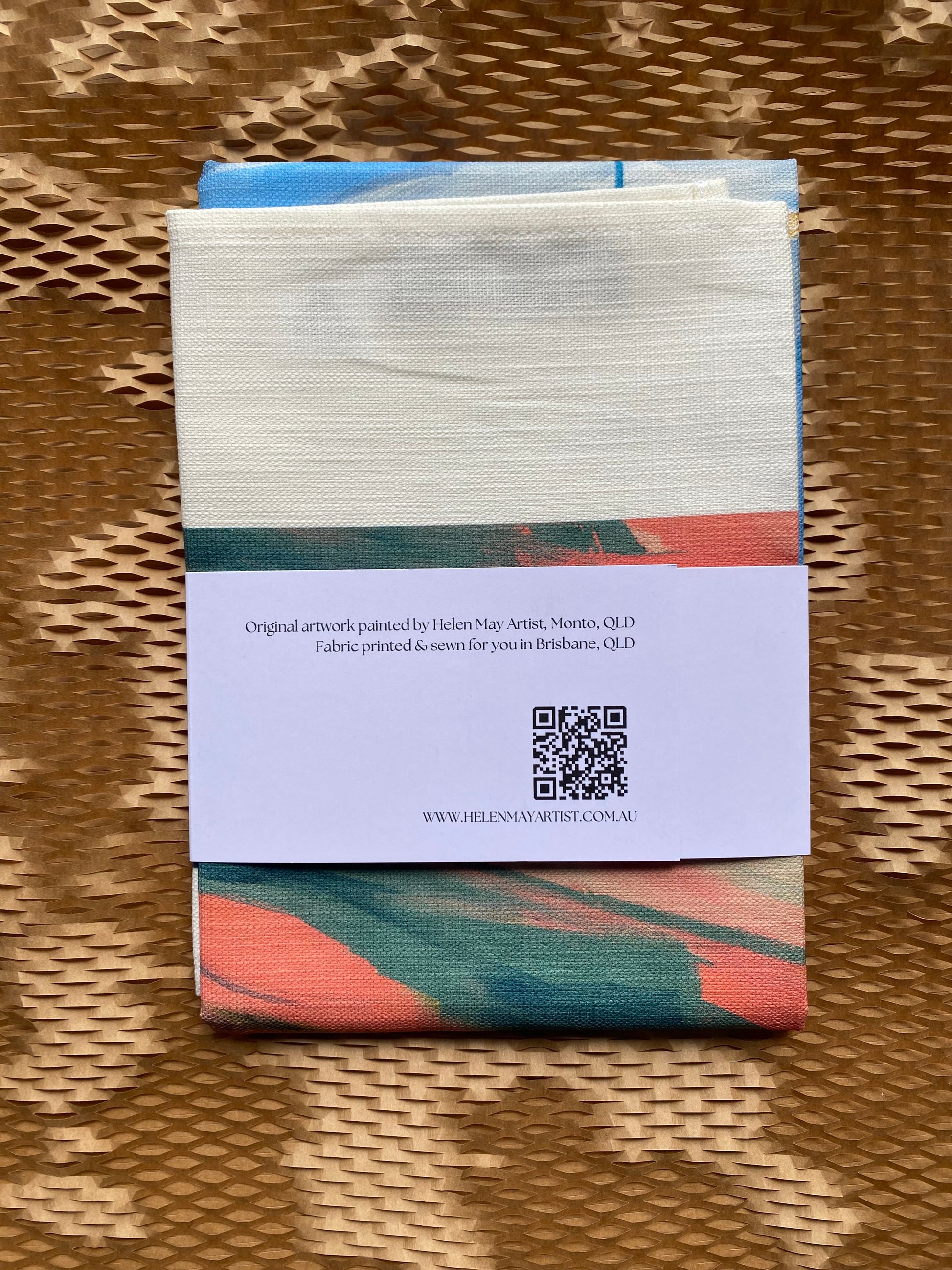 Each tea towel is carefully printed, cut and stitched in Brisbane, with the finished product being certified as 100% Australian made.