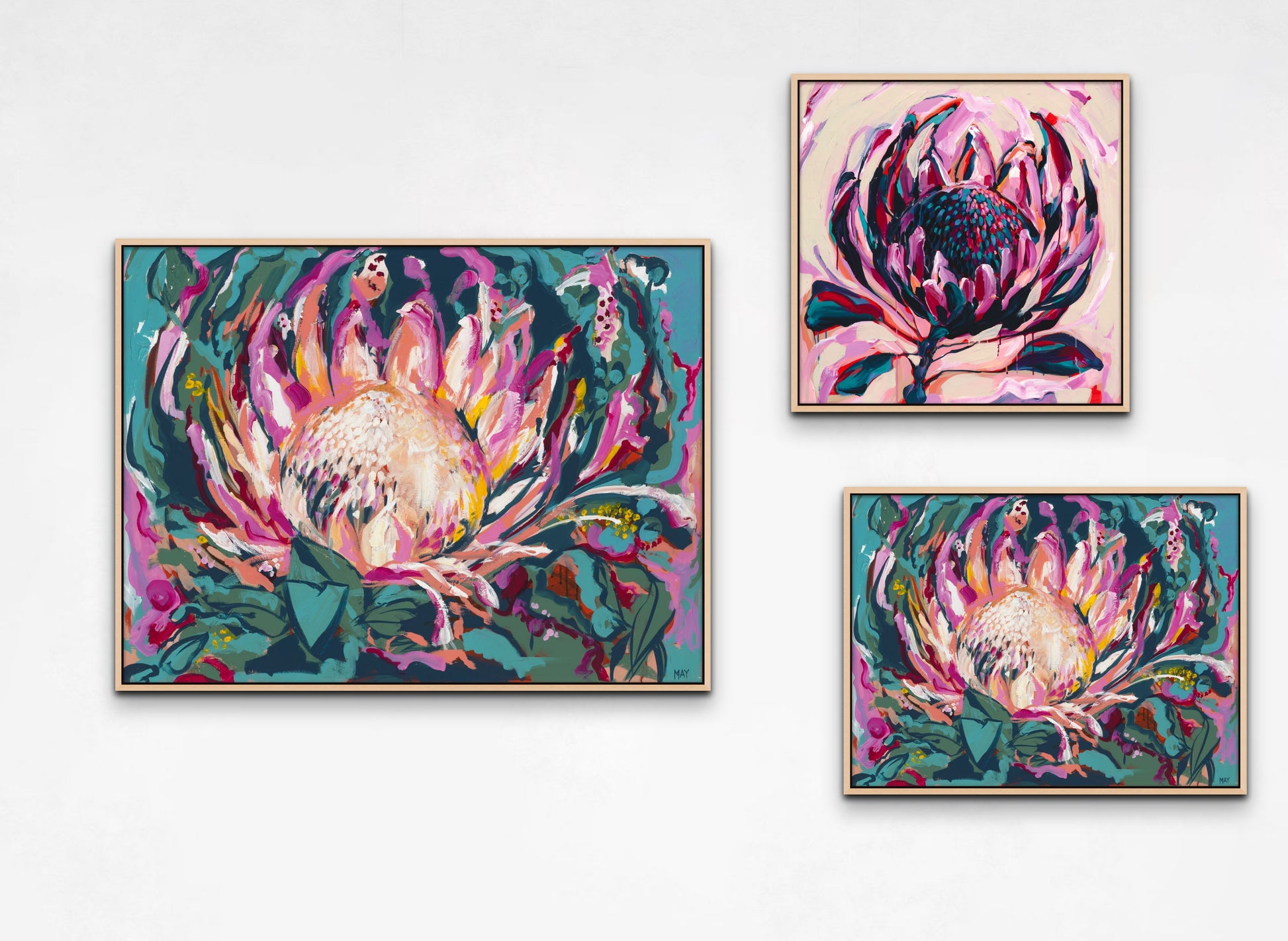 'King Protea' was painted in memory of Zara Hilary Boshammer and was donated to the Zara's Day online auction for 2021.